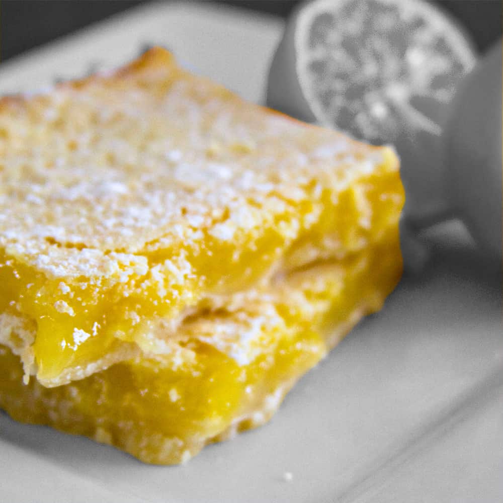 Classic lemon bar cookies enhanced by vanilla bean extract.